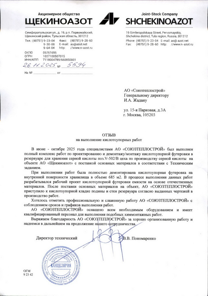 АО «Щекиноазот». 2024г.