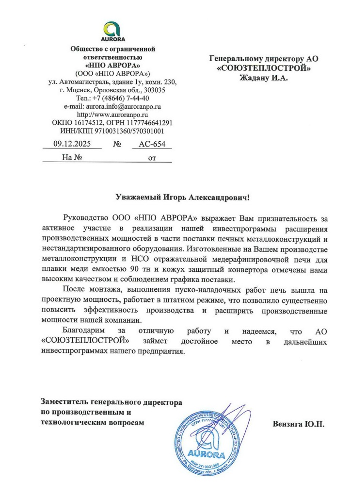 ООО «НПО АВРОРА». 2025г.